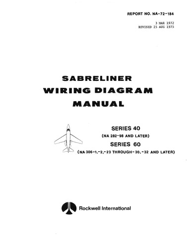 North American NA-265-40, 60 Sabreliner 1972 Wiring Diagram Manual (part# NA-72-184)