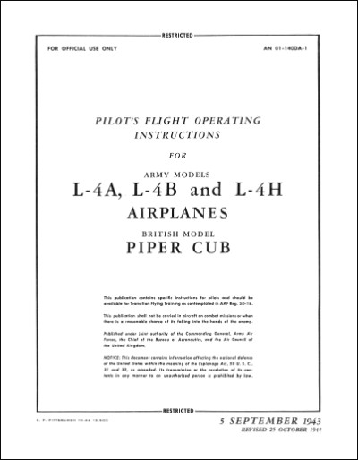 Piper L-4A, L-4B, L-4H Flight Manual (part# AN 01-140DA-1)