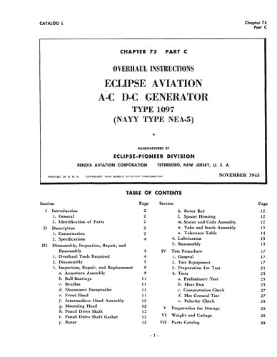 Bendix A-C, D-C Generators 1943 Overhaul Manual (part# BX1097-43-OH-C)